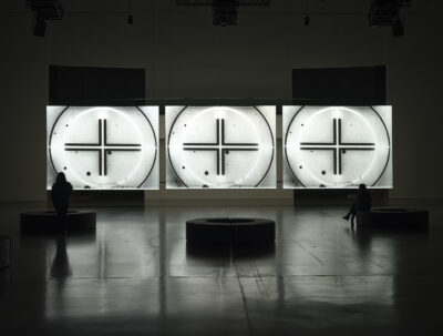 BRUCE CONNER / RECORDING ANGEL comes full circle with Conner’s late career film project, THREE SCREEN RAY (2006), a revisiting of his 1961 film COSMIC RAY, which combines an array of found footage meticulously edited synchronously across three screens while Ray Charles’ hit song “What’d I Say” (1959), a masterpiece of rhythm and blues, plays in the background. Re-editing his original footage in 2006, Conner created an explosive visual homage to the blind musician which some have likened to the visual equivalent of a cinematic slot machine in which images meet, diverge and meet again across its three screens. As with all of his cinematic work, Conner’s THREE SCREEN RAY delves into the optical unconscious of sex, power, and the consumer manias of the American Dream while asking us all to consider how the flow of images in our hyper-saturated mediascape can be interrupted and repurposed. While Conner’s restless investigation of these questions spanned decades, this presentation makes clear that his concerns with the existential threat of nuclear war, authoritarianism and consumer conformity are just as relevant today as they were when the works were made.